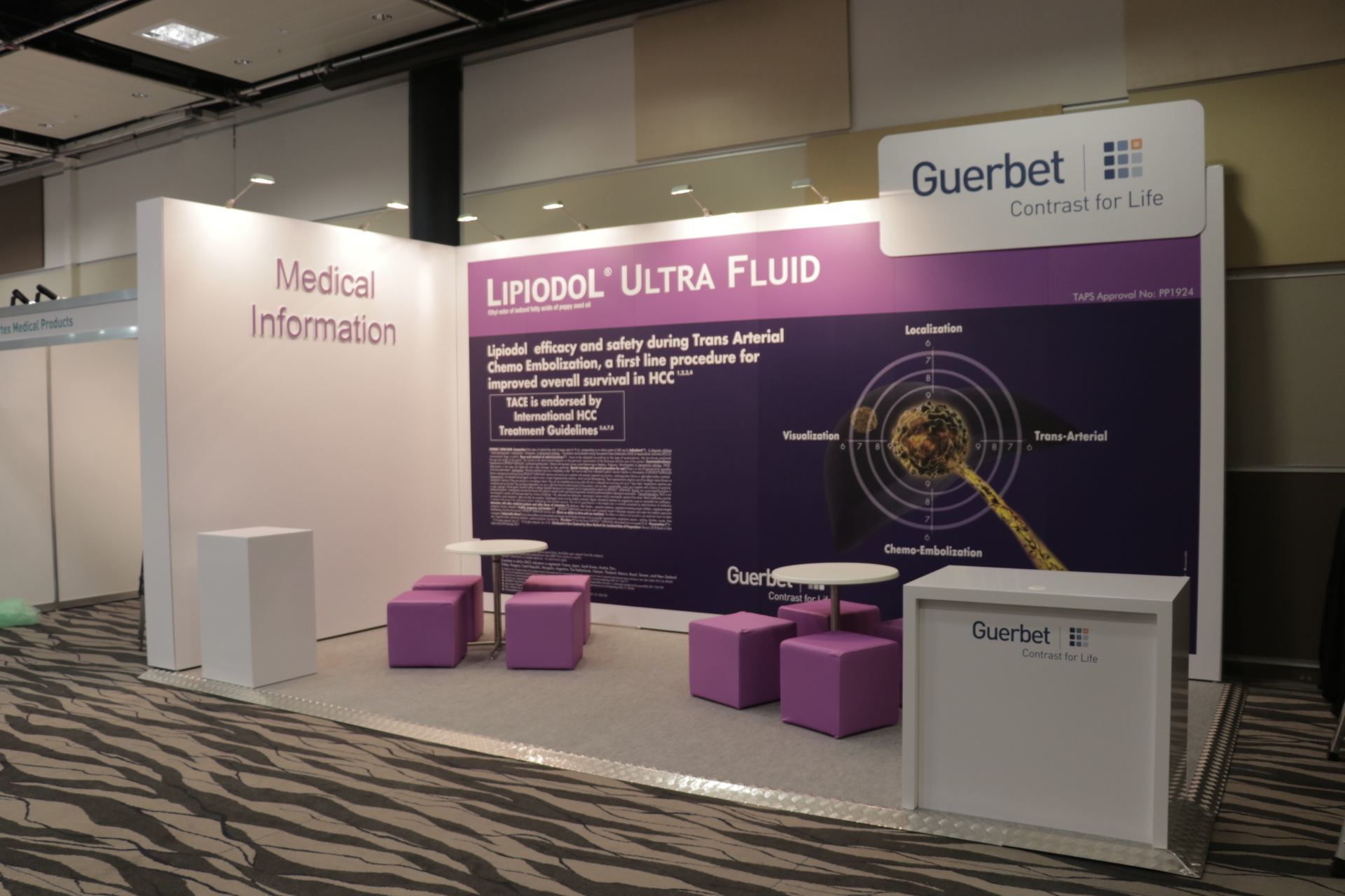 Guerbet is one of our regular clients, and this occasion we designed two 18sqm modular stands for them at APSCVIR in Auckland New Zealand. The stands showcased were built using maxima modular system structure, with compressed foam and inkjet graphic finishing. There are a number of benefits using exhibition modular systems. Not only do they limit the amount of post-show waste, but it also means we are able to setup and dismantle in just a matter of hours which is perfect for a small or medium sized trade show or conference.